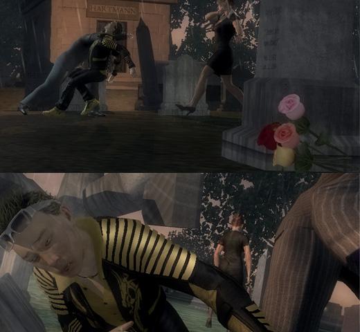 浪人的小公子为了向父亲证明自己的能力,带领众倭寇主动寻衅。但他挑错了时候,竟选择在艾许的葬礼上向乔尼盖特发动攻击。仇人送上门自然不能放过。前期的枪战很简单,小公子血减到一定程度会向车库逃窜,现在不用去追,把剩下的浪人解决后赶到车库他会再次驾驶专用机车登场,这时不追可不行,还是建议放弃摩托驾驶车库前的跑车追击,不然尾随的浪人车辆很容易把你撞的人车分离。如果你为刚才的追击操纵而恼火的话,接下来的过场动画会令你颇为解气,乔尼盖特痛殴小日本并将其活埋。