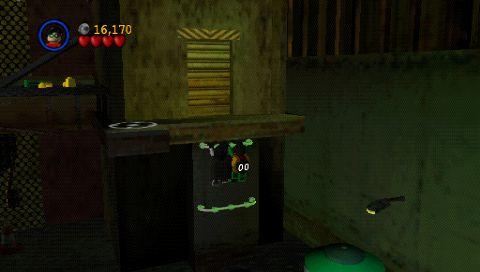 来到尽头后把打碎的碎片搭成栏杆后爬上,上去后让 Batman 换上 Glide Suit。