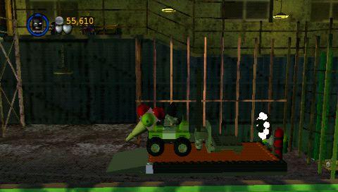 下来后朝前走,用推土车撞碎地上的大铁桶,把出现的积木搭成移动扳手。