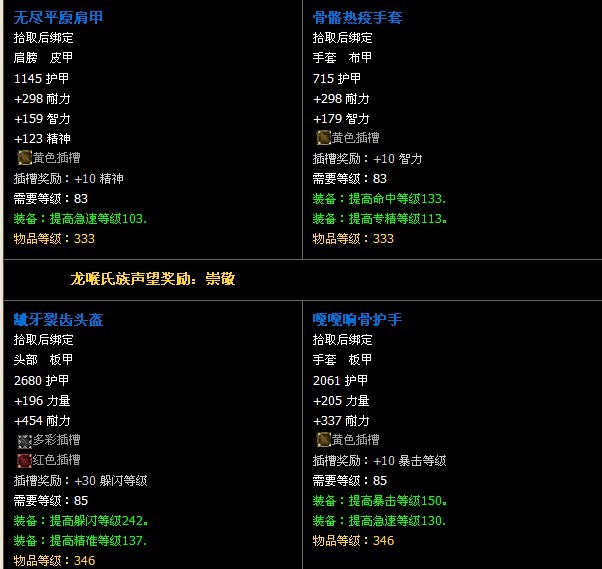除了装备,这两个声望还提供高级锻造、制皮、附魔等专业配方的出售,以及铭文副手物品必须的材料,这几个专业的玩家可以注意一下。