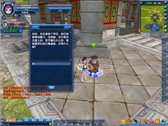5、凤冠霞帔准备好后再由队长到月老处交还任务,就完成登记结婚啦。物品(霞帔、凤冠)消失,同时会出现系统提示,通知全服 XX 玩家和 XX 玩家的结婚消息。