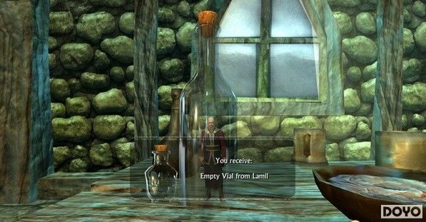 来到木屋后发现法师被人囚禁在了瓶子中必须取得解咒水,这里注意搜刮下屋子的宝箱。