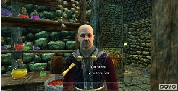 最深处女神像获得神水,不要回头直走即可直接来到法师房子前面的书上。