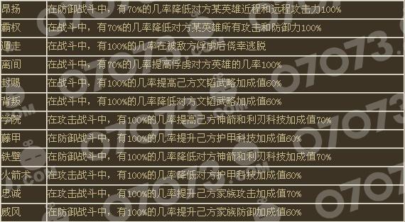 (3)离间技能效果为“70%的概率提高俘虏对方英雄几率 100%”,并不是将俘虏几率提升至 100%,而是在原来的俘虏几率上提升 100%,例如原俘虏几率为 5%,那么此技能生效后,俘虏几率将变为 5%*(1+100%)=10%。与之对应的遁走技能,10 级时可以 100%逃脱被俘虏,也就是说拥有 10 级遁走技能的英雄,不可能被俘虏;