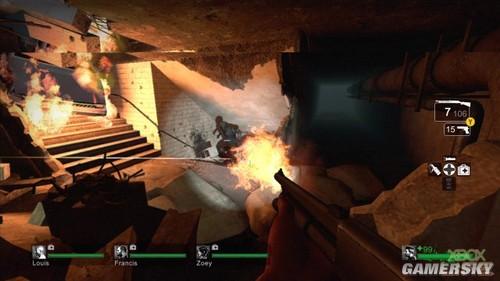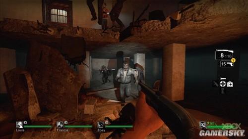 从安全室裡出来后,会看到一个大洞,底下有很多丧尸等待著你的到来!最好清除完再下去!