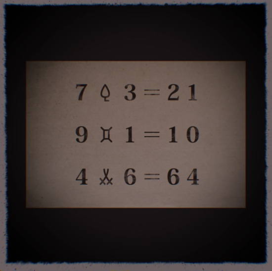 首先,车厢,只有一本书和一个纸条,纸条如下所示,代表了三个符号一乘一加一换位组合