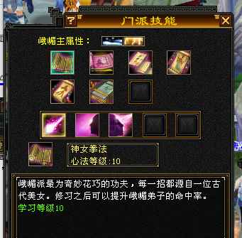 门派技能这里多了一个战斗~就是设置内挂的地方还不知道是什么样