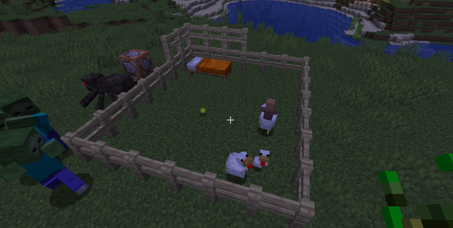不仅如此,小昼见鸡骑士中的小鸡似乎不会下蛋,便诱使另外一只小鸡去给它喂食麦粒,结果这两只小鸡还真能交配! 最后,小昼要做一个更加重要的试验,那就是将僵尸放在里面!在战斗中,村民们重新变成了那个小僵尸,一切都恢复了正常。这让小昼有一个问题,假如我们治愈了那个小僵尸,那个小的村民长大了,他还会骑着一只鸡么?