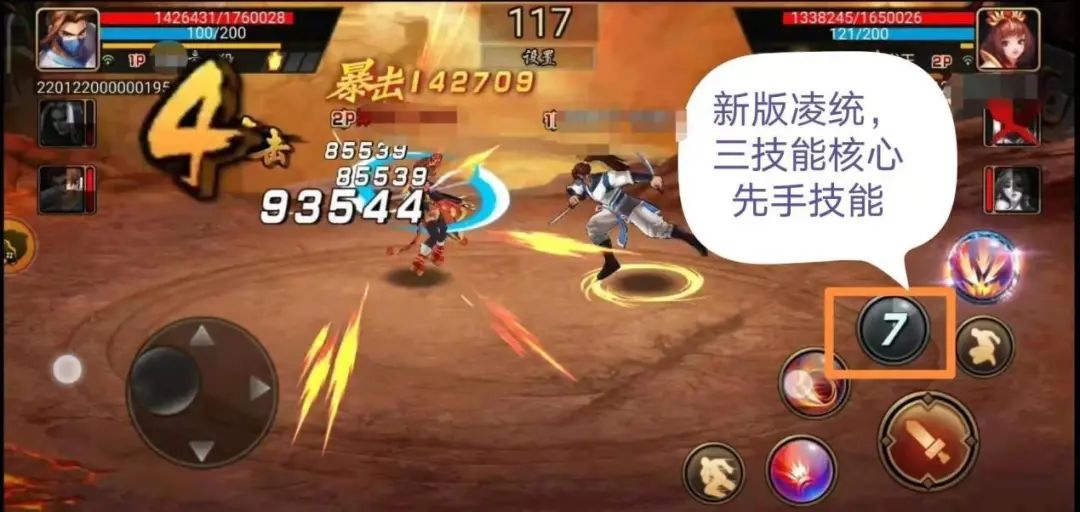 凌统的切将技能调整为二技能,现在凌统攻击范围加大,同一直线和 Y 轴都是他的攻击范围,以前还需要不断走位,寻求战机,如今凌统二技能虽然不破倒地,但属于小型范围追踪,切将便能顺畅打出一套组合拳,连招建议二技能连续释放两个,再打个三技能衔接一技能之后,还可以接大招,或 2321 连招都可以。