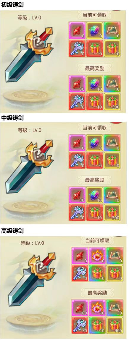 5、铸剑等级每提升 1 级,奖励数量加 1 倍,最高为 10 倍
