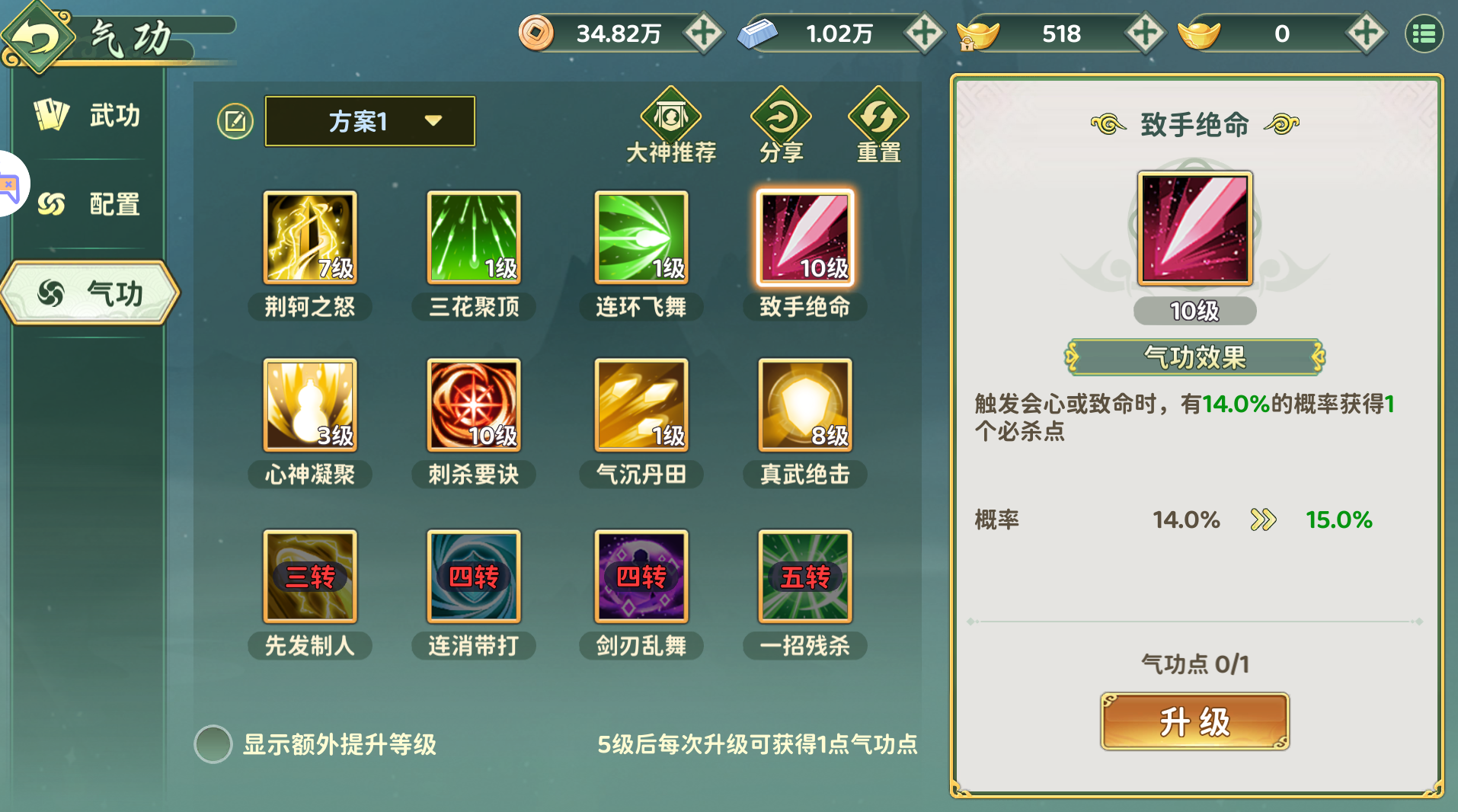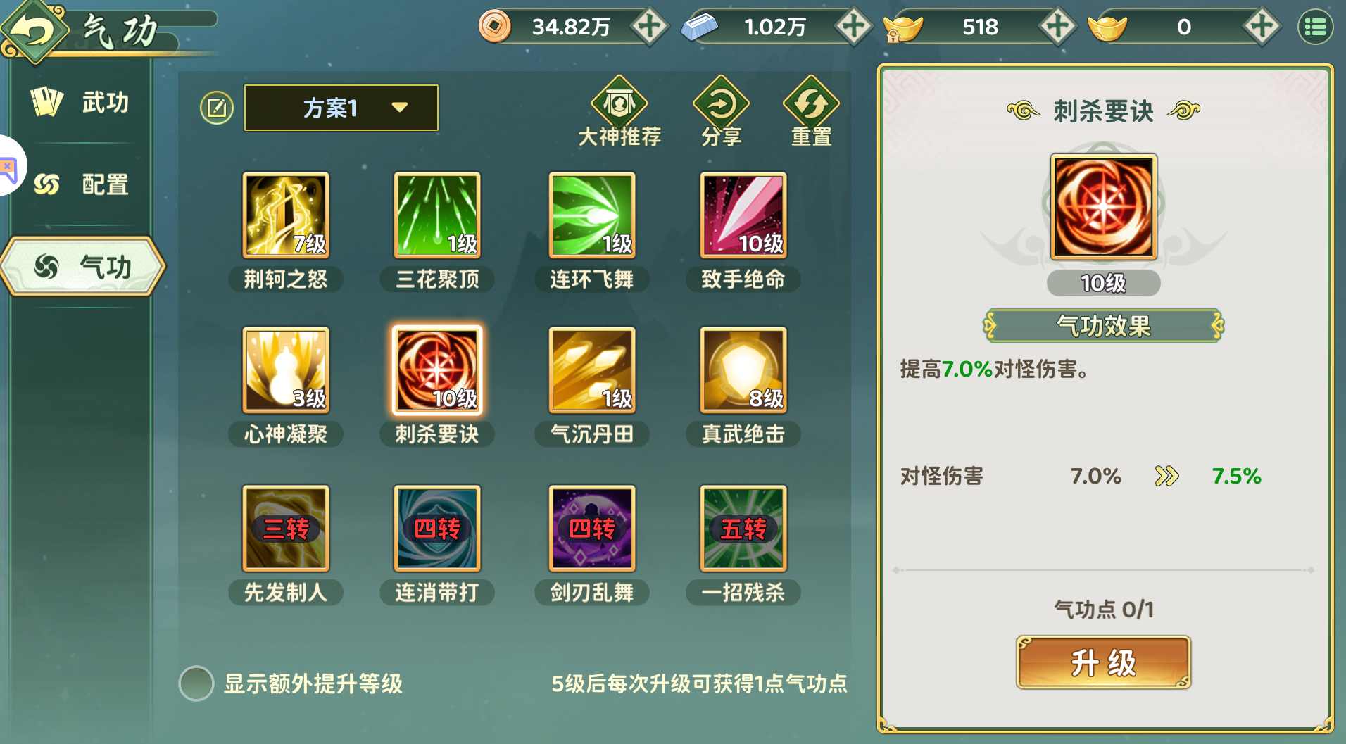 各位少侠打到后面会不会和我有一样的疑问,那就是,这个新角色刺客,他的气功点到底着重应该加哪些技能呢?