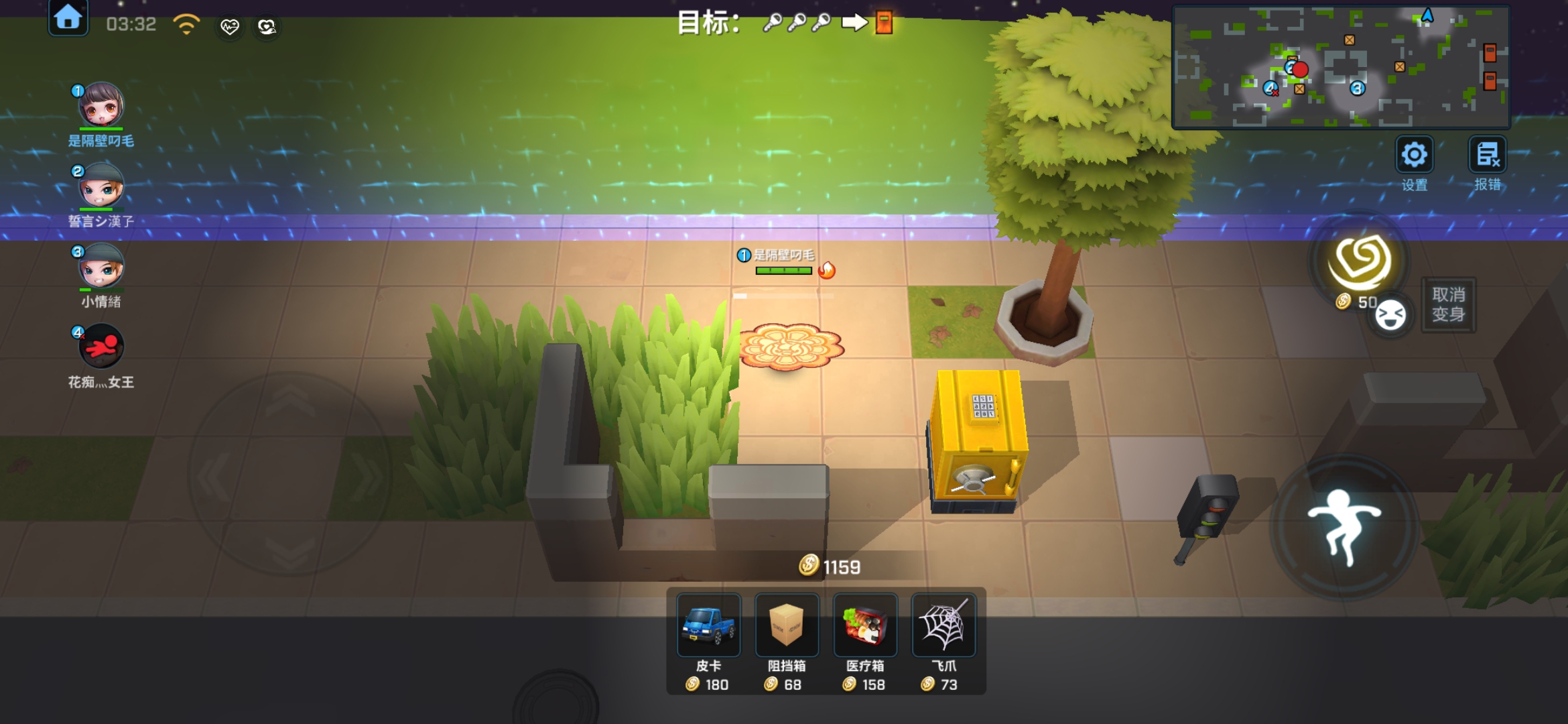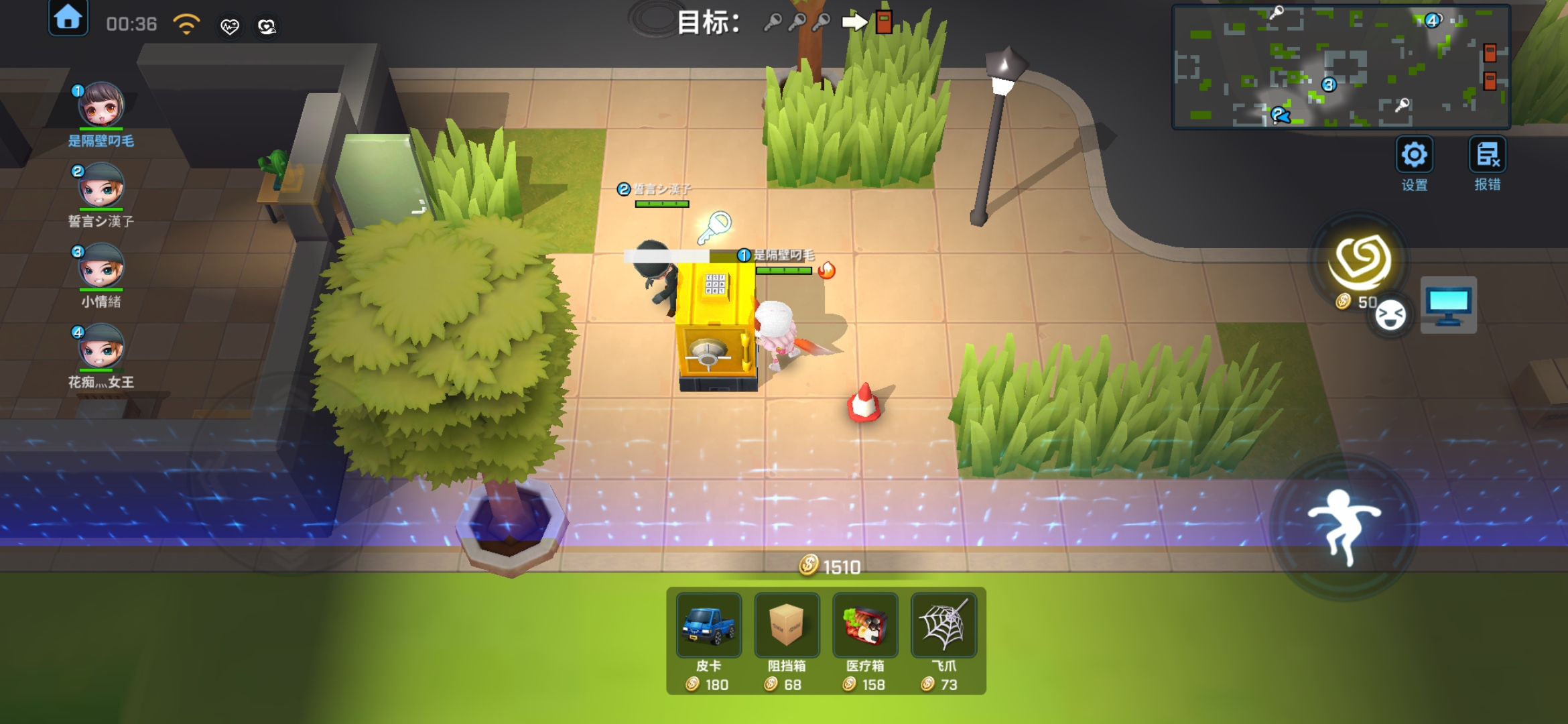 1.把控时间 因为游戏开始有个动画耗时 5 秒左右,所以到锁就是 12 秒左右,在 20 秒的时候要躲到草丛里,(草丛里别动)防速刷。如果追捕没来你这里或者又了就转移到另一个锁。