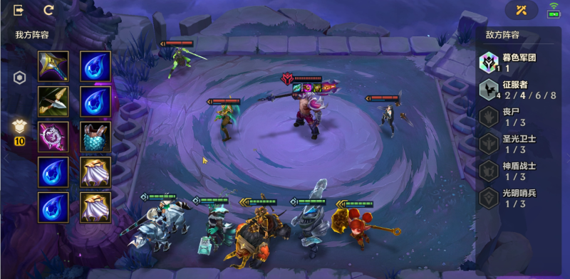 最终关卡,敌方 4 征服羁绊 BOSS 冥铁霸主技能伤害逆天,且还有海克斯科技枪刃增加续航能力,这关有一定难度。但我方也比较强势,5 枚棋子中 4 枚有控制且还有 3 星瑟庄妮这个坦度超高的棋子。这关通过的关键就在于控制,特别是瑟庄妮与诺提勒斯的 4 秒控制。