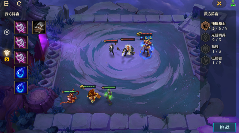 敌方阵容 3 神盾 3 星乌迪尔,携带装备蓝霸符+2 个大天使之杖,如果让其多释放几次技能,就会护盾非常厚很难杀死。但我方有 3 星吉格斯与能削减敌方魔抗的布兰德阵容还是比较容易的。