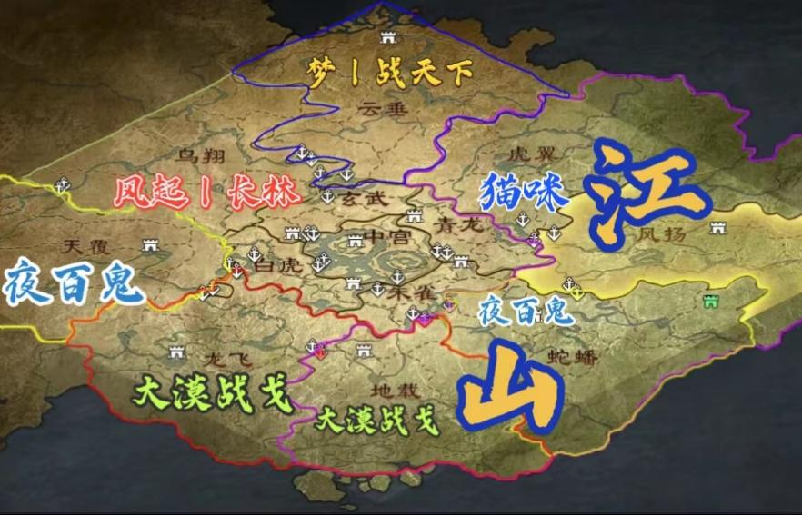 【江山】自 X260 溃败后整合不及,在未满编的情况下进入 X338。开区后,【江山】落风扬、蛇蟠、地载、虎翼四州,独自面对【夜百鬼】、【大漠战戈】两个满编同盟。