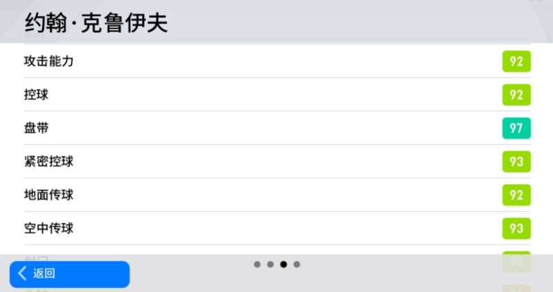 如今,重新回到《实况足球》的克鲁伊夫,再现了他在球员时代的不俗实力,并在球员数据上进行了细致的体现:92 的速度、93 的爆发,让其不负荷兰飞人之名,足以用速度生吃对手绝尘而去;92 的地面传球、93 的空中传球,又让他在组织进攻的过程中,能够为队友送上恰到好处的助攻;90 的射门、86 的脚下力量,更是克鲁伊夫得分能力的体现,在禁区内外都足以令对方门将胆寒!