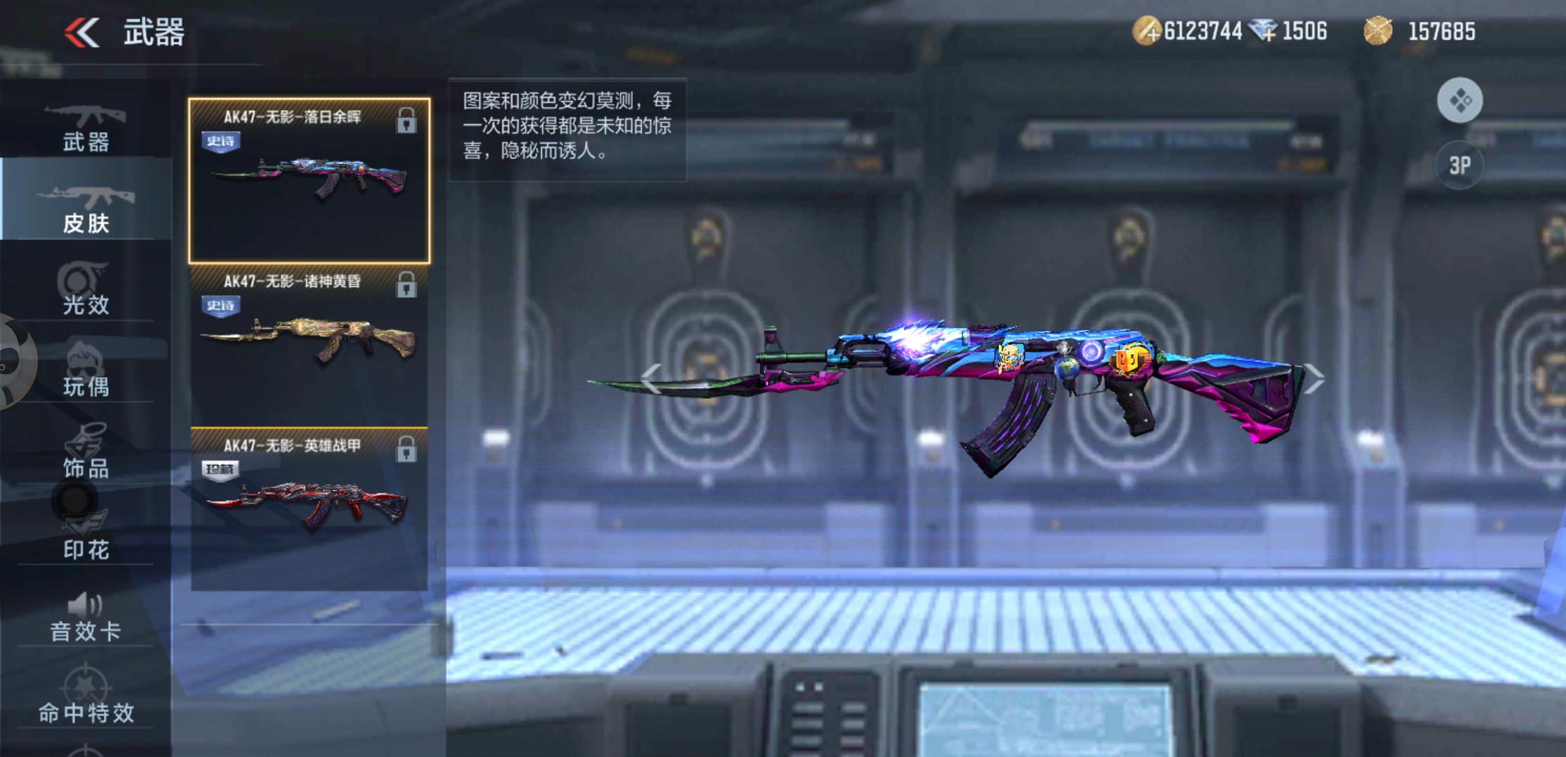 而魔幻青配色仅仅是日晖夜辰皮肤四款配色中的一款,还有落日余晖的蓝紫色再加上橙红色、活力绿色,适配有全息闪烁的动态光效,这个颜值绝对逆天!尽管汗血之争与火麒麟-玉门春风定位相同,尽管诸神黄昏、能量核心等售价不菲,尽管枪神之影、枪皇之影是实力的象征,但在日晖夜辰面前都黯然失色!
