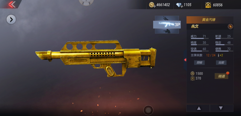黄金气锤是一把活动产出的白嫖黄金武器,虽然期限版十分常见,但是想要获取永久版就需要等待白嫖活动了。气锤系列目前没有英雄武器,除了威侯可以变形为类似气锤的散弹枪之外,黄金气锤就代表了气锤系列的最高性能。总的来说白嫖的黄金气锤还是很香。