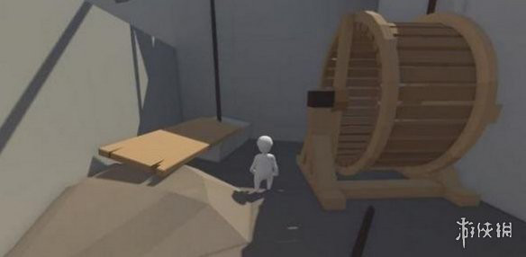 来到右侧滚筒内,向右侧缓缓移动 Bob,机关将木板缓缓抬高形成一个斜坡。