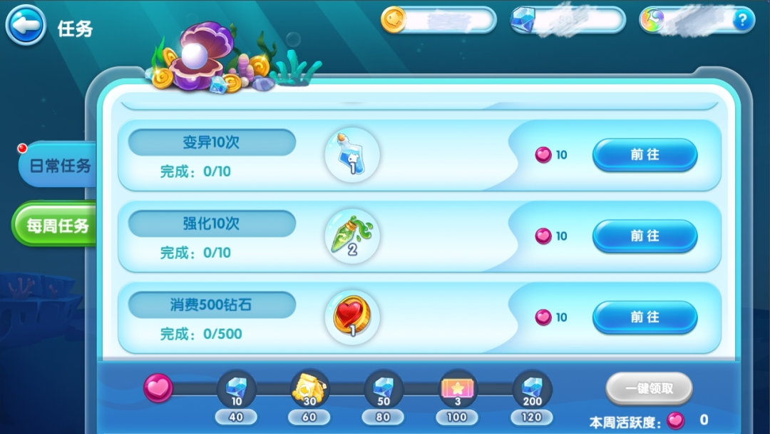 在日常游戏期间完成每日充值、每周任务后都会获取相对应的许愿币。