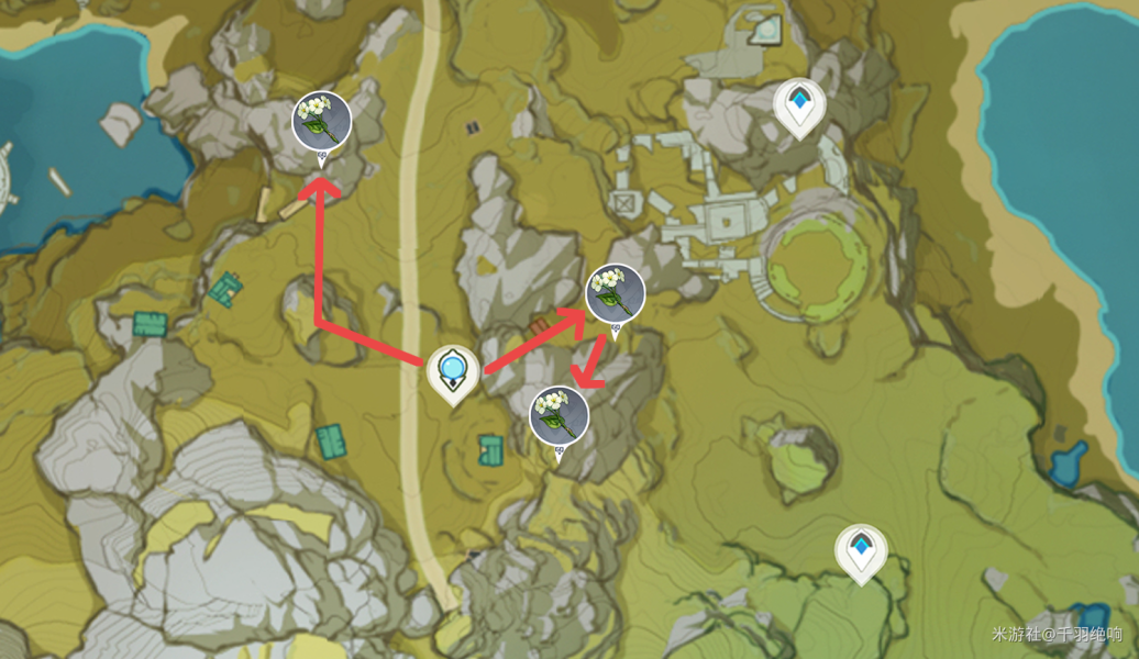 路线点/2/奥藏山北、华池岩岫(秘境)/>>>/数量 4 朵