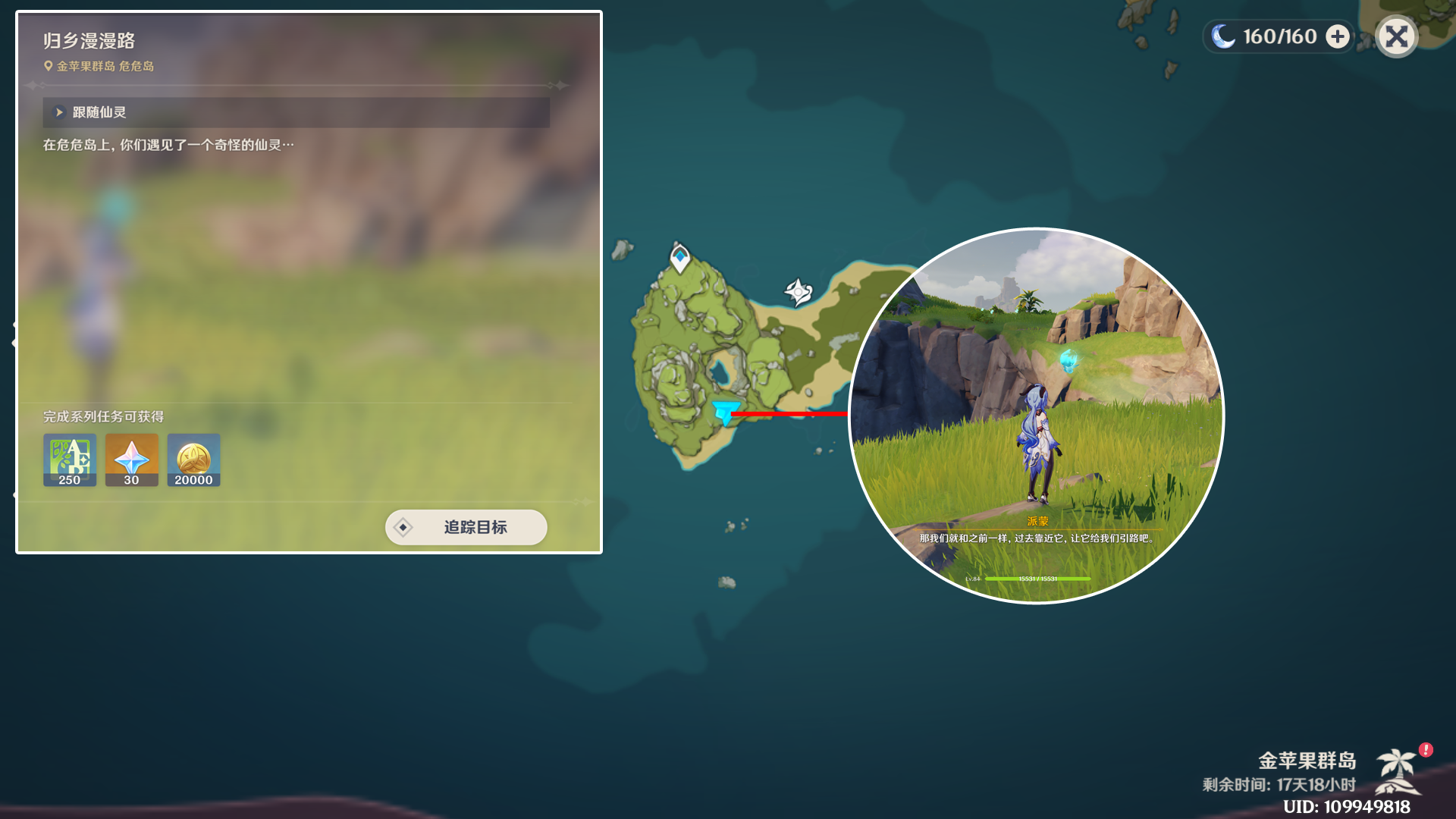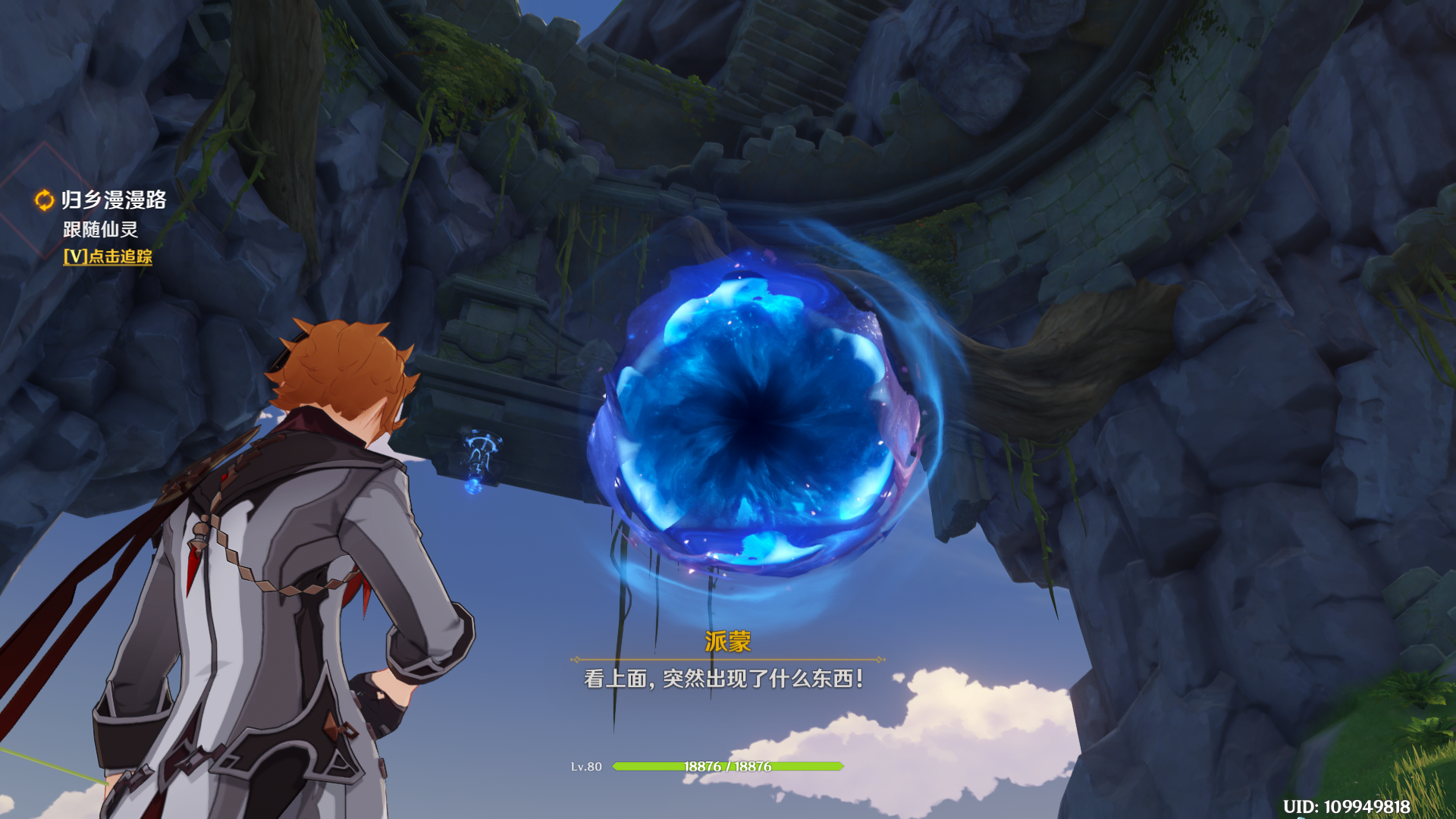 来到图中所示地点,可以看到一个仙灵在漫无目的的打转,旅行者只要靠近它就可以触发世界任务——归乡路漫漫。