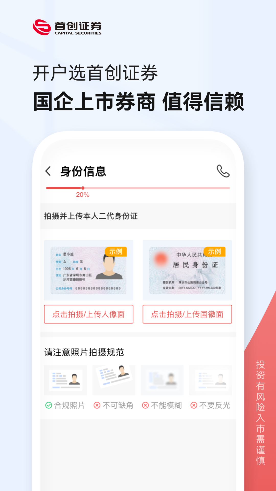 首创证券股票开户是首创证券(证券代码“601136”)旗下官方开户软件,能够为您提供专业的线上开户服务,让您可以灵活利用碎片时间,免去临柜环节,享受快速开户体验。来首创证券,让您体验简单开户。