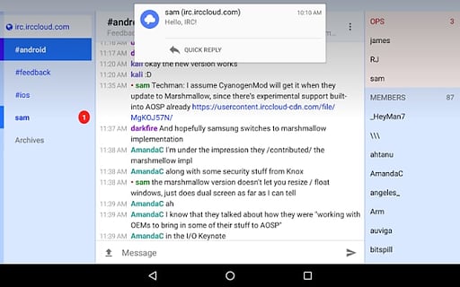 加入我们的 irc.irccloud.com #feedback 渠道的反馈和建议,以便我们改进的应用程序。您也可以给我们发电子邮件在 team@irccloud.com 或找到我们在 Twitter 上@irccloud