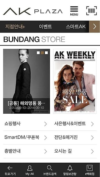 다양한 쇼핑행사와 이벤트, 입점 브랜드검색, 영업안내 등 AK플라자의 매장정보와 \\r