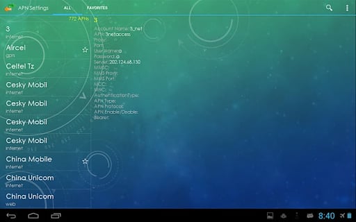 3. Ability to APN Setting as a favorite and share socially OR with different applications using a context menu \\r