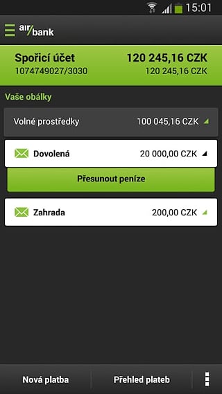 Kdykoliv vám ukáže, kolik máte peněz na účtu. Pohodlně s ní zadáte platbu, třeba jednoduchým ofocením QR kódu. O všech platbách máte dokonalý přehled. K dispozici máte navíc šikovné filtry. Jednotlivé platby si přitom můžete zařadit do skupin, abyste věděli, kolik za co utrácíte. \\r