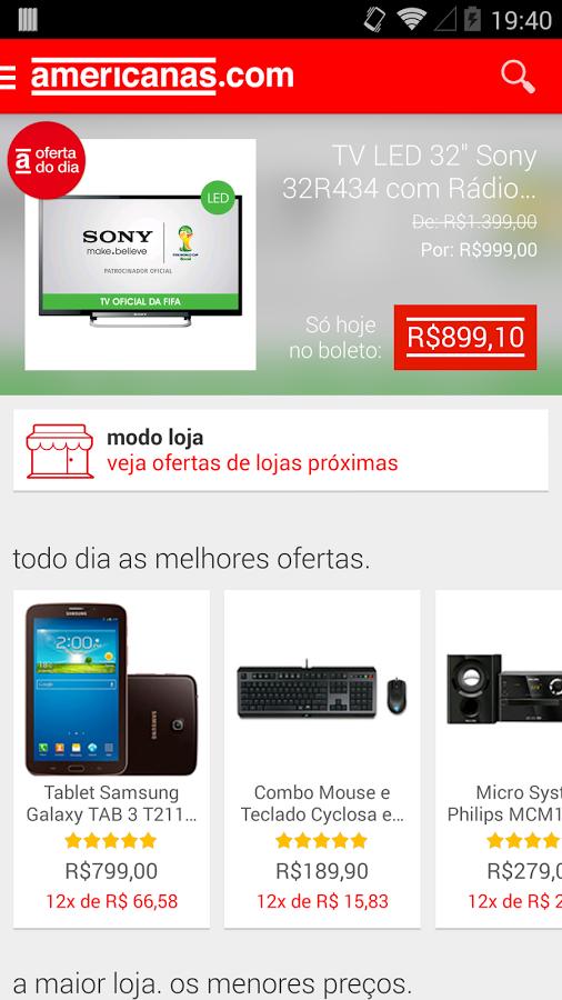 Tenha a loja mais querida dos brasileiros no seu smartphone Android!No app Americanas você encontra tudo o que precisa com facilidade, segurança, rapidez e os menores preços, claro! 😉 + COMPRE com facilidade, pague como quiser! + COMPARE preços dos seus produtos favoritos com o leitor de código de barras! + ACOMPANHE seus pedidos pelo app! + LEIA avaliações feitas por outros clientes! + NAVEGUE por milhares de produtos! + FAVORITE seus produtos prediletos! + COMPARTILHE o que você curtir com seus amigos! + LOCALIZE nossas ofertas e lojas mais próximas de você! Comprove por que a Americanas.com é a loja mais querida!tags: Lojas Americanas, Americanas.com